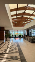 Возле каждого сектор ресторана находится кофемашины и чай. Прекрасно работает и реагирует персонал столы чётко быстро убираются меняются салфетки раскладываются приборы каждому наливают воду в бокал обслуживание просто на высоте!!!
