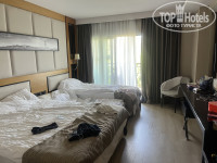 Мы в Турции второй раз. Отель хорош в сегменте Недорогой, бюджетной пятерки. Комната - на три спальных места. Одна двойная и одна полуторка. Можно попросить дополнительно кровать в комнату. Комната оснащена всеми удобствами: вай фай, кондиционер, средства гигиены. В комнате есть мини бар. Он к слову бесплатный. В мини бар кладут соки, воду и минералку. По приезду нас встретил носильщик. Доставил наши вещи в комнату. Нас быстро заселили. Ресепшен говорит на русском и английском. Также в самом отеле есть довольно много русскоговорящего персонала. Про уборку: убирались нормально. Один раз попросили поменять постельное белье, но в целом - нормально. Еда вкусная, горячая, не заветренная. Дети едят все с удовольствием. Наедаемся до полного живота. Днем на улице дают мороженое в неограниченном количестве. Также гамбургеры, картофель фри, шавуху. То есть голодными не останетесь Есть три бара в лобби работает двадцать четыре часа, бар у бассейна, в котором есть снеки и любые алкогольные напитки, и на нулевом этаже. Отдельно хочу отметить гостевую службу, которая моментально решала любой вопрос, всегда улыбчива и приветлива. Есть русскоговорящие работники- это радует. Спасибо за обслуживание, за сервис, я рекомендую! С семьей- это идеальный отдых. В отеле есть свои водные горки, их 5 штук. Работают 2 раза в день- детям хватает! Они счастливы. Так же для детей вечером есть вечерняя анимация и после взрослая анимация: это конкурсы, либо приглашенные артисты! Спасибо за отдых, вернемся снова!