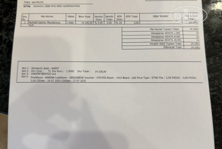 INF GRIGOREV MIKHAIL 11.04.2025 ) проживали в данном отеле и никаких замечаний со стороны отеля не получали. В день выезда туристы сделали выселение , как положено в 12-00, предварительно, обратившись на ресепшен с просьбой принять номер, на что ресепшен ответил, что они не принимают номера специально и горничную не направляли, сделав chek out туристы ожидали своего трансфера на территории отеля. В 15-00 туристам стали говорить, что в номере обнаружен разбитый телевизор, за который они должны заплатить 300 евро, иначе они позвонят в полицию, снимут туристов с рейса и трансфера, который на минуточку заплатили в пакетном туре туроператору, данные слова подтверждал отельный гид, который закреплен за данным отелем, просьба обратить внимание на работу данного представителя отдельно, а так же хотим получить ее полные ФИО и документы, подтверждающие право работать в принимающей компании ФАНСАН. Туристы предложили руководству отеля написать расписку, что они согласны на рассмотрение данной ситуации через официальную претензию туроператора к агентству и оплатить счет по возвращению домой , разобравшись в ситуации так, как наличных долларов и евро у туристов не было и трансфер ( отдельно заказанный туристами после слов отельного гида, что их снимают с группового оплаченного трансфера у туроператора ФанСан) уезжал через 30 мин, на что отель отказал и пошли вызывать полицию на гостей, угрожая тюрьмой и тем, что не выпустят их из отеля пока они не оплатят счет. Туристы отдыхали с ребенком 3 месяцев, 2 года и 10 лет просто на панике и под давлением были вынуждены отдать все наличные денежные средства в размере 10 000 руб и сделать перевод на сумму 25 000 руб на какую-то непонятную карту гражданина Белоруссии.Просьба так же обратить внимание , что отель принимает наличные рубли к оплате на территории Турции и оплаты на сторонние карты каких-то сотрудников. Считаем, что в отеле отработана схема мошенничества на развод российских туристов в грубой форме и под давлением отельного гида, который как представитель своих же туристов уверяет их в том, что с рейса они будут сняты и сидеть им в тюрьме. Просьба разобраться в данной ситуации, так как туристам не показали разбитый телевизор, аргументировав его уже заменой, а после оплаты счета туристы поднялись в номер, чтоб сфотографировать телевизор в исправном состоянии, которого в номере уже не было. Когда туристы попросили акт сверки номера от горничной, то отель предоставил документ, который не соответствует тому,что при ежедневной уборке телевизор был исправен, так как туристы даже не видели пульт от него, чтобы включить. Это полный развод туристов данным отелем, просьба принять меры и вернуть туристам денежные средства, которые из них вымогали незаконно, необоснованно после сделанного check out , угрожая турецкой тюрьмой. Просим не оставлять эту ситуацию без внимания, разобраться в ней и вернуть туристам денежные средства.