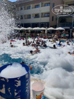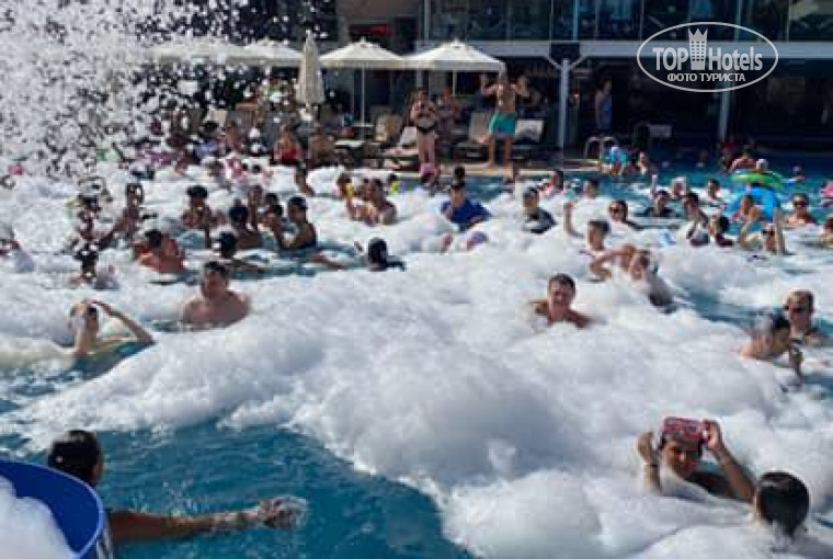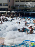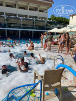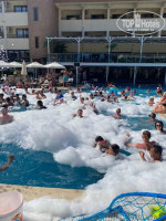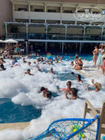 Территория отеля хоть и компактная, но очень уютная и ухоженная. Бассейн чистый, с горками и удобной зоной для отдыха. Места хватало всем, лежаки были всегда. Музыка — спокойная, фоновая, без лишнего шума. Здесь можно и освежиться, и просто позагорать, не спеша наслаждаясь отдыхом.