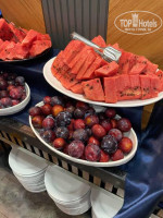 Питание по системе "всё включено" оказалось выше ожиданий. Меню разнообразное: на завтрак — сыр, оливки, омлеты, свежая выпечка; обеды и ужины — всегда мясо, гарниры, овощи и фрукты. Десерты — отдельное удовольствие. Порадовало, что всегда можно было найти что-то по вкусу — и сытное, и лёгкое.