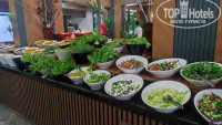 Территория отеля — зелёная, уютная, много тени, ухоженные газоны и цветы. Особенно приятно было гулять по вечерам — везде мягкая подсветка, спокойная музыка, приятная атмосфера. У бассейна было спокойно, вода тёплая и чистая, детям понравилось, а мы спокойно загорали и отдыхали рядом.