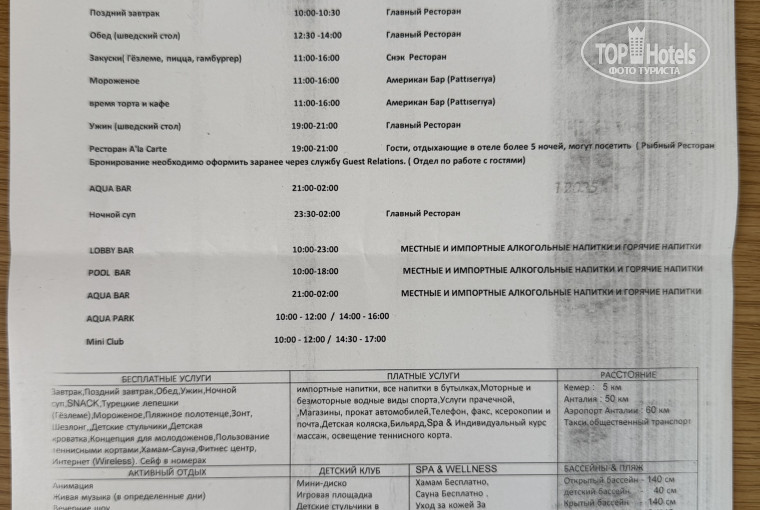 По питанию: еда однообразная, много рыбы, зелени, десерты, мороженное, в принципе все стандартное для шведского стола в Турции. Голодным точно не будете, но иногда необходимо походить по выбирать. Напитки все местного производства. Есть ночной суп с 23:30-2:00, мы воспользовались, когда заселялись, перекусили.