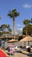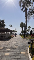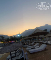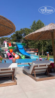 В отеле 3 пирса (2 бесплатных , один из них с лежаками и баром, а другой маленький только для спуска в море, 1 пирс платный), пляж длинный 1 км. Лежаки на бесплатном пирсе занимают с ночи, на пляже лежаки всегда есть свободные. Нам понравилось отдыхать на дальнем пляже (где мини-аквапарк 4 горки), людей меньше, море чище. Заход в море галька, для чувствительных ножек купите Aqua shoes (в отеле продают по 25 евро , если 3 штуки , то предложат по 20 евро за пару, на рынке цена 10-15 евро, торгуйтесь).