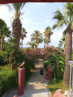Заход с пляжа отеля очень каменистый, рекомендую сразу закупить дома хорошие резиновые аквашузы, у нас они остались с отдыха в Сочи. На местности мы для интереса смотрели есть ли такие в продаже, мы не видели. Везде будут тряпичные, как носки, они ни от чего не защищают. Второй вариант это отойти на 200 метров в лево или вправо в соседние пляжи там заход хороший. Практически без камней. Лежаки и зонтики на море всем всегда хватали, зонтики старые, матрасы страшные. Лежаки обычные. Бар на пляже без алкоголя. Так что приходилось ходить на центральный в отеле.