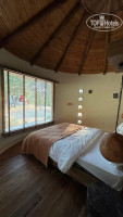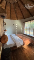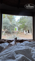 Номера - это Дома необычной формы, со всеми удобствами, с кондиционером, в нем шикарное постельное белье, одеяло, подушки (я редко бываю довольна). Халаты и тапочки есть. Из каждого дома бомбический вид на оливковые деревья.Интересная задумка, жалюзи поднимаются и у вас в любое время шикарный вид на оливковую рощу.