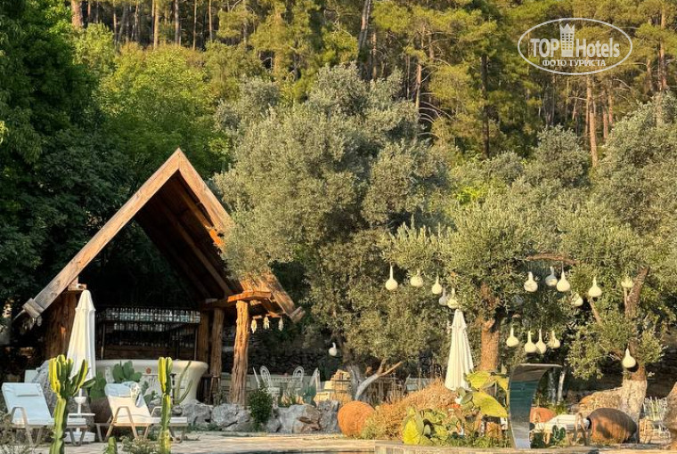 Новый красивый отель, находится в горах, в оливковой роще, 10 км от пляжа Гечек. Все из натуральных материалов, дерево, камень.