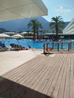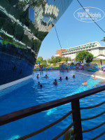 Вся территория почти , это бассейн , честно за время отдыха ни разу в нем не искупался. Мы же на море приехали.До моря идти не спеша 5 минут.