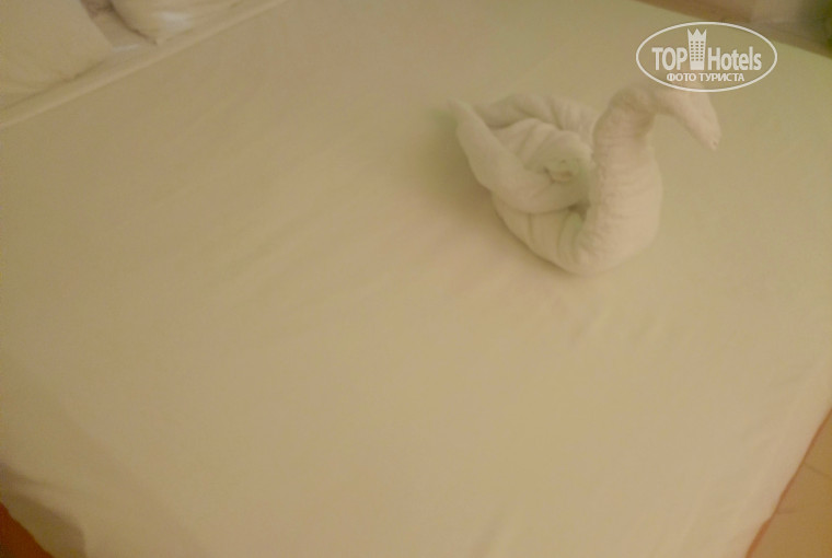 Вот к номеру и к уборке нет никаких претензий. Воды у нас всегда было достаточно, полотенец тоже, в какой-то день принесли халаты, фигурки на кровати были каждый день разные. Доллар в день для уборщика творит чудеса. Но муж сказал что второй раз он Гафи не переживет. Пляж зачетный.