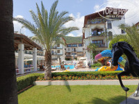 Пляж. Пляж чистый, есть специальные места для курения. Есть душ, что очень удобно. Хороший вход в воду, есть пирс и спортивные развлечения в виде катания на банане и т.д. Лежаков не хватало, отдыхающие поразному занимали лежаки и большое колличество лежаков простаивало просто с вещами. Был даже момент, что одна гостья заняла два лежака, один для себя другой для своих вещей. Плохо что в отеле за этим не следят и не пытаются решать это. Был даже случай когда на пляж принесли лежак с бассейна...Весь отпуск мы вставали рано утром, занимали лежак, завтракали и шли на пляж. В ином случае лежак не добыть.
