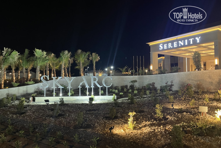 В Египет и в любой отпуск каждый едет со своими пожеланиями. Для нашей компании из 4-х человек это были: хороший пляж (нормальный вход в море не по понтону, без километра пути в воде по щиколотку, без проблем в отлив), хорошее питание (необязательно 10 видов морепродуктов и 20 салатов помидор/огурец в разной нарезке и без 100 видов сиропных тортов), отсутствие толчеи и очередей на территории, хорошие номера. Это всё сочеталось в неожиданно появившемся у наших туроператоров отеле Serenity Sky Ark. В итоге получили всё, на что рассчитывали, и даже 2 номера практически рядом. Персонал в отеле отличный, все стараются помочь и выполняют свои обязанности на 100%. Отель еще не полностью открыт, ощущение, что в нашем номере мы были первыми. Пляж - пожалуй, самый лучший среди ближайших отелей. Лежаков всегда всем хватает, никто не бежит занимать до рассвета. По еде никаких претензий нет, у каждого свои предпочтения - проблем с выбором не возникало пока. Мороженое с 12 до 17, очередей нет. На пляже кто-то поранил ногу, спасатели быстро и качественно оказали первую помощь (полная аптечка, работали в перчатках и тд). Про детский клуб сказать не могу, тк дети выросли. Море - с рыбками разнообразными, для детей есть возможность спокойно поплавать и посмотреть, тк нет дикой глубины и есть затопленные плиты, чтобы можно было встать и отдохнуть. После полного открытия, уверена, что отель будет пользоваться огромной популярностью!