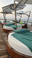 Пляж. Берите аквашузы и вспомните меня добрым словом! Лучше всего заход справа и слева от пирса, а вот около Shadow (морские развлекухи) не заходите в море никогда. Мне очень понравилось загорать и купаться на пирсе, но места бывают свободными редко, а занимать нужно до восхода (5:45), рано конечно, но можно лечь и спать до 9 под шум волн. Еду и напитки можно заказывать прямо к шезлонгу через qr код на зонтах (см. фото), приносят в течении 10 минут. У пирса много рыбок, больших и маленьких, можно плавать с маской и кормить из рук. В Shadow брали парасейлинг и seabob (цены чуть выше среднего, но приемлемо). Также брали водные лыжи, но заменили на еще одни покатушки на seabob-уж очень нам понравилось под водой кататься.