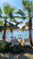 Пляж: двоякое ощущение. Идти 2 минуты, по красивой дорожке, есть бар, много лежаков и лауч зона. Всё бесплатно и красиво. Но это "на втором этаже" На первом, у моря лежаки грязные сломанные, занятые и гаходчтмя на проходной части (очень узкая береговая линия)