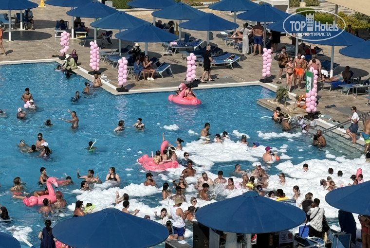 Территория большая, собственный пляж, множество бассейнов для детей и взрослых. Для детей есть мини-аквапарк с горками.