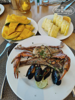 питание в течение дня и обед в баре у бассейна и баре на пляже. всё готовится при тебе по меню твоего заказа, свежее и красиво, по-ресторанному, сервировано.
