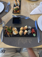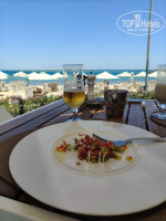главный ресторан. О!!! это счастье любителей поесть!!! в отеле нет классического шведского стола. есть станции: выпечки, пироги, пиццы; суши; тепаньяки; паста, лапша; гриль, сделай сам свежий салат; сладкое, мороженое, фрукты, ягоды. подходишь к нужной тебе станции и заказываешь пальчиком, что и сколько ты хочешь есть. и ждешь. недолго. количество персонала главного ресторана отеля отлично рассчитано на количество гостей, чтобы очередей не было. есть ожидание изготовления заказанного тобой блюда, как в обычном ресторане. даже если вы не видите своими глазами желаемого вам продукта - обратитесь к персоналу ресторана, и вам принесут лично для вас или сделают блюдо. тарелки с объедками официанты уносят из зала, гости не видят процесса уборки объедков, это не портит аппетит и нюх. персонал главного ресторана, официанты, повара настолько добродушен и улыбчив, но и расторопен и профессионально быстро выполняет свои обязанности, настолько создают настроение любви и счастья, что словами не передать! главный ресторан находится на крыше корпуса с видами на закат, море и большую зеленую территорию. есть круговая терраса на свежем воздухе. главный ресторан отлично кондиционирован. мне как раз в меру.
