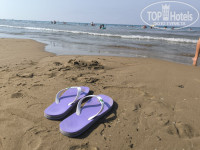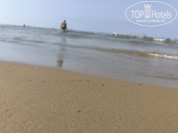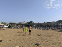 Пляж: просто прекрасный. Мелкий песочек, очень пологий и долгий вход в воду. Всем достаточно места, люди не толкутся на трёхметровом пятачке. Шезлонги удобные и в избытке, навесы тоже хорошие, в баре правда из алкоголя только вино и пиво, всяких там мохито и виски-колы нет, а не из алкоголя - кофе и всякие там фанты-колы. Но зато, как я уже упомянул, кормят вкусно. Очередей больших нигде нет. Переодевалки и душевые есть. Идти до пляжа от отеля - минуты 2 с горки. Подниматься, правда, в горку, но оттуда раз в полчаса-час ходит автобус до отеля, так что напрягаться не обязательно.