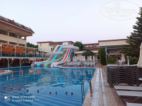 Отель небольшой, но ухоженный: зелёные газоны, пальмы, цветы, приятная дорожка к бассейну. Есть водная горка, детская площадка. Анимация ненавязчивая — если хотите веселья, участвуйте, если нет, никто не уговаривает. Вечером музыка, мини-диско для детей — очень мило.