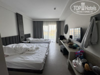 В номере была одна большая кровать и отдельная большая кровать для ребенка, матрасы жесткие, нам нравятся такие, но кому-то будут жестковаты. Подушки можно поменять по запросу на ресепшене. Вид на море обрадовал)) Но есть один нюанс, около бассейна проходят шоу и дискотеки до 23-40 где-то и это все очень хорошо слышно в номере, если вы захотите поспать раньше, если не чувствительны к шуму, то будет норм, мои например спали, мучилась только я.