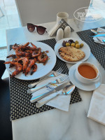 Еще очень классный,веселый и доброжелательный парень Мохамед,такой высокий,улыбчивый в очках)мы с радостью оющались с ним в Альфредо в первые дни,смеялись над его шутками по-русски,а потом его потеряли...и расстроились,но,через пару дней,благодаря менеджеру ресторанов,нашли своего дружочка в ресторане Голден Лаундж (Аля-карт).Это единственный рестик из 4-х в отеле,куда надо записываться,но,это не сложно по приложению через куар-код,там очень вкусный Цезарь и Медальоны из говядины,а вот алкоголь тот же,что и по всем ресторпнам отеля.Мы пили розовое вино и пиво,хорошего качества,нам понравилось)В ресторанах побывали во всех,наелись от души креветок тандури и говядины во всх видах)Очень вкусно! Всегда много свежих салатных листьев разных видов:руккола,айсберг,шпинат,и названия некоторых не знаю даже.Оливки очень вкусные!Лосось подкопченый был всегда на завтраках,и жареный стейками пару раз на Шведке в Альфредо.