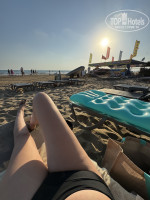 До пляжа идти минут 5, по пути куча различных магазинчиков с адекватными ценами. Лежаков хватает всем и всегда, они в отличном состоянии и новые. Всегда можно найти место под навесом в тени или на солнце, чтобы позагорать. Интернет там тоже ловит, но довольно плохо и медленно работает.