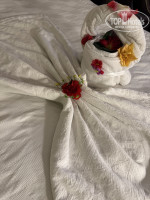 Вообще, идеальной чистоты не наблюдается и на всей территории отеля. Тарелки в ресторане могли быть грязноватые, какие-то лужи не вытираться часами, где-то может валяться мусор. Общий туалет рядом с лобби всегда был не убран, как туда ни зайди. В ресторане могли просто убрать грязную посуду и положить чистые приборы, но скатерти с крошками и пятнами не менять. Такое чувство, что не хватает персонала, чтобы все успевать. Они все вроде бы стараются, но вероятно таким количеством им просто физически всё не успеть.