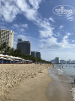 Пляж: выход к пляжу через тоннель прямо из отеля, это просто вау! Полотенца выдают прямо на выходе из тоннеля. Лежаки и зонты расставляют каждый день в 6 утра. 9 зонтов и 30 лежаков на такой большой отель , конечно, очень мало. По обе стороны платные лежаки, цены крутят как хотят, начали со 100 000 донгов за лежак , а через день цена уже взлетела до 200 000 за лежак! Дорого! Море до 10 утра почти всегда было чистое и спокойное, потом начинались не большие волны и прибивало разный мусор, Из реки Кай находящейся не далеко. Мы купались каждый день, никакой кусачей живности не было ни в море ни на пляже. Подводного мира нет нет совсем.
