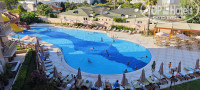Отель расположен неплохо. Вторая линия не означает отдаленности от моря, и даже имеет плюс в виде удаленности от шумных тусовок первой линии. Идти до пляжа недолго (неспешно минут за 7-10). Лежаки на пляже отеля удобные. Пляжные полотенца в отеле выдают. Сами пляжные полотенца не люксовые конечно, но чистые и со своей задачей справляются. Выдаются и меняются они на минус первом этаже, график указан. Работники рецепции вежливые, спокойные, есть работники, владеющие русским языком. Проблем с разрешением вопросов, их восприятием и пониманием не возникало. Еда в ресторане отеля хорошая. Поскольку на вкус и цвет товарищей нет, не стану оценивать блюда. Их достаточно для того, чтобы нормально поесть, выбрать что-то по душе и вкусу. Из фруктов выкладываются яблоки, апельсины, сливы, дыня, арбуз. Сладости присутствуют (на завтрак попроще, в обед и ужин больше и разнообразнее). Из сладостей тоже есть что выбрать. Порадовало обилие зелени. Понравился турецкий чай, особенно если добавить в него мяту (имеется в наборе зелени) и лайм. Спиртное я особенно не пробовал. Напитки местного производства, так что ничего особенного от них не ждите. Есть коктейльное меню (алкогольное и безалкогольное). На пляже спокойно, справа (если стоять лицом к морю) есть фирма, катающая на бананах, на парашютах и т.д. Море хорошее, чистое. В конце августа очень теплое. Во второй половине дня, как правило, были волны, что особенно радовало детишек. Людей на пляже и в море приличное количество, но по головам ходить не придется, место есть для всех - и для водоплавающих и для тех, кто любит побулькаться возле берега. После обеда (видимо потому что усиливается жара) людей на море меньше. Бассейн у отеля не гигант, но хороший и чистый. Днём там можно поиграть в водное поло. Есть две небольшие горки. За бассейном сцена, там вечерами проводится часть культурных мероприятий. Другая часть таких мероприятий может проводиться в баре у бассейна. Выступления коллективов были разные, на любителя, от скучных и незапоминающихся до весёлых и поднимающих настроение. Про анимацию особенно ничего не смогу рассказать, так как большую часть времени проводил вне отеля (на море в основном или в пеших прогулках). Недалеко от отеля есть туристические тропы в сосновом бору горного массива, откуда открываются красивые виды. Но нужна правильная обувь. В жару туда не ходите, тяжеловато без профподготовки и воды питьевой надо с собой брать приличное количество. С утра хорошо там погулять. Осенью , наверное, здорово.
