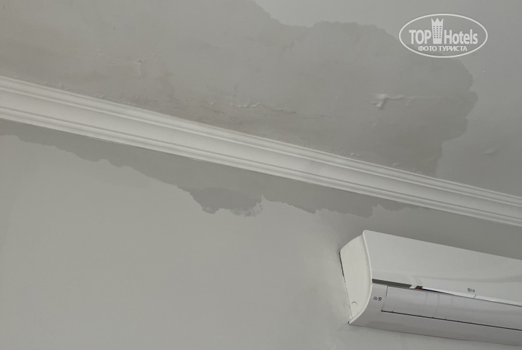 • Потом — номер с протечкой воды с потолка, где жили ещё 2 дня.