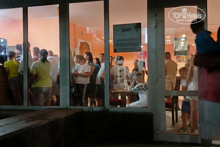 В баре, что возле столовой, по вечерам громадная очередь, минут на 15...30. Работник в баре не успевает (он, как правило один) обслуживать - делать сладкую вату, подавать мороженное (сделанное из непонятных инградиентов), наливать напитки (пиво, водку, лимонад, сидр). Напитков дают не больше двух стаканов в одни руки. Очередь одна и для детей и для взрослых.