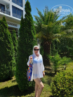 Территория красивая. Зелень, беседки ,качели, освещение. А вот пост охраны ... Мы выезжали из отеля в 2.30 ночи. Спустились сдать ключи от номера на ресепшн ни кого, на улице на входе ни кого. Ворота открыты. Заходи, бери что хошь. Ладно хоть полуспящая уборщица выползла, ключи ей отдали.