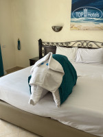 Начну с рецепшена ребята невероятно отзывчивые и милые, показали нам вкратце где что находится куда пройти, предлодили кофе. После обеда оперативно разместили нас в лучшем номере с видом на красивейшее море, в номере есть холодильник, сейф. Убираются в номерах стабильно каждый день, меняют полотенца, выдают мыло, гель для душа и шампунь. На шведском столе раз в неделю по определенным дням дают крабов на гриле, креветок. Каждый день на обед и ужин есть рыба, говядина, кальмар, разнообразные овощи. По вечерам проводят пляжные вечеринки, вечеринки у бассейна, аниматоры выполняют свою работу хорошо. Море невероятное, голубое и с кучей рыбок. Из отеля открываются невероятные виды на море и горы. Ездили на экскурсию от отеля в Люксор. В городе достаточно безопасно, но обязательно стоит брать с собой рубашку и панамку накрыться, так как жара невероятная. Аниматоры очень стараются ребята, многие говорят по-русски, классно танцуют и умеют подбивать на активности. По вечерам отель устраивает вечерние шоу, некоторые из них нам очень понравмлись: например, вечеринка на пляже и вечеринка у бассейна, а также пенная веверинка. Есть отдельное место для снорклинга в виде забрршенного подводного города, искуственно сделанного. Там много коралов и красивых рыбок. Они очень красивые, иногда даже встречаются большые экзепляры!