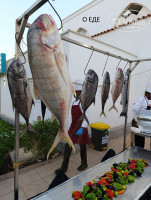 Рыба и крабы гриль (в воскресенье), тушёное мясо, курица, рыбное карпаччо (в воскресенье), куча разного риса, макароны, картошка, овощные салаты и просто овощи, очень вкусные финики, дыня, апельсины, яблоки, виноград, груши, появились бананы. Не понятные канопешки с колбасой, пицца. Всякие тушёные овощи и овощи гриль. Куча сладостей, которые я не ем. Крепкий алкоголь, пиво, вино, лимонады. Каждый день, примерно, так же, только гриль меню на мясное меняется (я не про ФК Спартак). Ресторан у ресепшен. Можно посидеть в помещении с кондиционером или на улице, где жарче, но есть ветерок и под спокойную музыку. В помещении пиво из банок, на улице разливное. Вино вполне приличное (иногда), но слабенькое. Как раз, чтобы на жаре не развезло (красное и белое). Есть разные масла, чтобы заправить салат. На ужине очереди больше. Но проходят быстро. Всё зависит от того, как быстро мы сами себе тарелки заполняем.