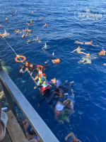 В прошлом году были в Шарме в Гольф, там плавали часами до обеда и после, риф был шикарный, пляж с двумя пирсами. Купайся спокойно. Мы были готовы к бездонному морю и к тому, что его открывают только после обеда, так как бассейны тоже очень любим. Но зря мы тащили маски и ласты. Море после обеда уже хоть и открывают, но для плавания места крайне мало, и пирс на 4 отеля, два Nubian, и Паротель, еще с четверки через дорогу тоже ходят. Очередь на спуск и подъём невероятная, сразу все плывут смотреть рыбок, лично я видела только пятки и тыкающиеся в меня маски, кучу тел. Рыбок крайне мало, все однотипные вдоль рифа, их видно только рядом с пирсом, чуть метра 2 дальше видимости нет, мешает куча людей, вода взбудоражена, ничего не видно, риф полумертвый, а когда плывешь назад, солнечные лучи падают на риф так, что только блики солнца и больше ничего. Пробовали придти на риф первыми, стояли, ждали, когда откроют, тоже самое все, не интересно. И это все, чтоб проплыть два метра и потом дождаться, чтобы выйти, что не так просто, на веревках все висят, не пробьешься, и плавают тут же рядом на пятачке, у меня на бедрах синяки от пяток. Муж, хороший пловец, из 10 дней последние 5 на море не ходил, сказал, что в супе он не купается. Как то так. Даже в лагуне больше рыбок на поверхности плавает, люди ходят, смотрят. Так что, если вам по душе долго купаться в море, вам этот отель не подойдет..