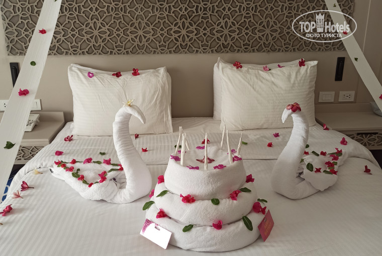 Ушли на море, в это время обычно номер убирали, не знаю кто сказал про мой ДР персоналу, возможно жена, обычно бывало в других отелях приносили тарелку фруктов и всё, и так хорошо, а тут приходим в номер, он украшен, не просто, а прям нарядно-нарядно, стоят - уборщик, старший уборщиков, с тортом с горящими свечами и поют "happy birthday tu yu" - это было нечто, я забыл когда так радовался, задул свечи, загадал желание))) На этом с ДР было не всё, вечером были записаны в итальянский ресторан всей компанией 5 чел., пришли, а там наряжен стол в центре зала, поздравления от персонала ресторана, под конец ужина, когда уже собирались уходить, неожиданно опять весь персонал ресторана с тортом и свечами ...... давно у меня не было такого ДР !!!