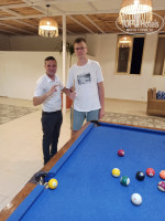 Момад Рафат (не уверен что правильно пишу имя на русском языке) - это бармен бара на втором этаже в зоне релакса, фото его с младшим сыном прикрепил ..... сын очень хотел подучиться играть в бильярд, я учитель так себе, катали мы с сыном шары в этом баре, подошёл Момад, взял кий и стал показывать как правильно нужно бить и остальное, он оказывается в прошлом какой то чемпион по бильярду в Египте, сказал что может заниматься с сыном бильярдом по вечерам, репетитором так сказать, когда людей в баре нет, так и занимался все дни, сын после ужина всегда бегом туда, Момад как настоящий учитель, мог похвалить, а мог и поругать если что-то не так делал, очень душевный человек, мой армейский сослуживец по моему совету хочет жену с сыном отправить в этот отель отдыхать, если поедут, обязательно передам презент Момаду с фотографией его с моим сыном, уверен что он вспомнит ..... кстати в этот бар с бильярдом вход только для клиентов Сан Фан и бильярд бесплатно, для всех остальных есть столы в другом месте по 5 долларов за час.