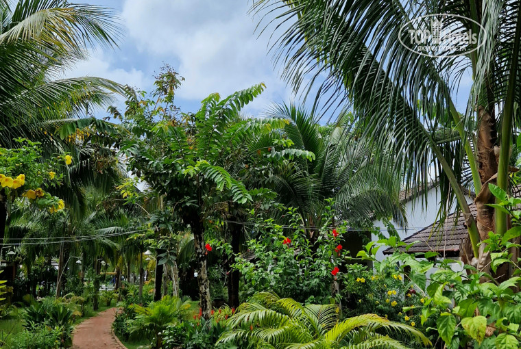 Красивая территория, старые номера, слышимость сумасшедшая, маленький грязноватый бассейн, НЕТ ГОРЯЧЕЙ ВОДЫ В НОМЕРАХ,только то,что нагреется за день, на крыше стоят бочки 😄 завтраки однообразные, скудные. На 3 прям с натягом. До моря очень далеко, рядом пару магазинов,аптека,массажка, отель расположен за городом в деревне!! Только на байке передвигаться или брать авто.