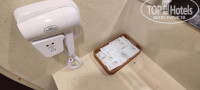 В отеле имеется 1 лифт. Номер нам дали на 3 этаже с видом на дорогу, по которой мы приехали и на отель Бумеранг. Мы вначале расстроились, но открыв балкон, поняли, что здесь очень тихо. А отель напротив не работает. Сам номер просторный, есть 2 столика. Привыкнуть к бетонному полу в номере было сложно. Ощущение какого то подвала не покидало. И с розетками беда. Чайник у нас стоял на полу, так как мы не нашли других розеток. При этом розетку от телевизора пришлось вытащить. Выключателей штук 10, и очень сложно разобраться, кто за какой свет отвечает.