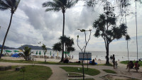 В один из дней мы на такси доехали до пляжа ТРИ ТРАНГ. На улице цена 200 бат за машину в 1 сторону (ехать 15 мин), через приложение 140 бат. Пляж небольшой (200м), без волн, много деревьев. Шезлонгов бесплатных на всех не хватало (за пиво или любой другой заказ на 100 бат), мы лежали на своих полотенцах. Был прилив, так что покупались замечательно. Народу в воде максимум было человек 20, далеко практически никто не заплывал,никто никому не мешал, все наслаждались наконец то морем. После 15 ч начался отлив, стало очень мелко, обнажился крутой спуск вниз, прям коленки в песок ударялись. Вот для такого сезона, этот пляж единственно верный вариант. На пляже есть отели, но в принципе , 200 бат не так уж и дорого, если расценивать как экскурсию. Ведь в Паттайе все ездят на военный пляж или пляж танцующей девушки, а там цена трансфера по 300-400 бат с человека, тут же всего 200 (либо еще дешевле, если через приложение).