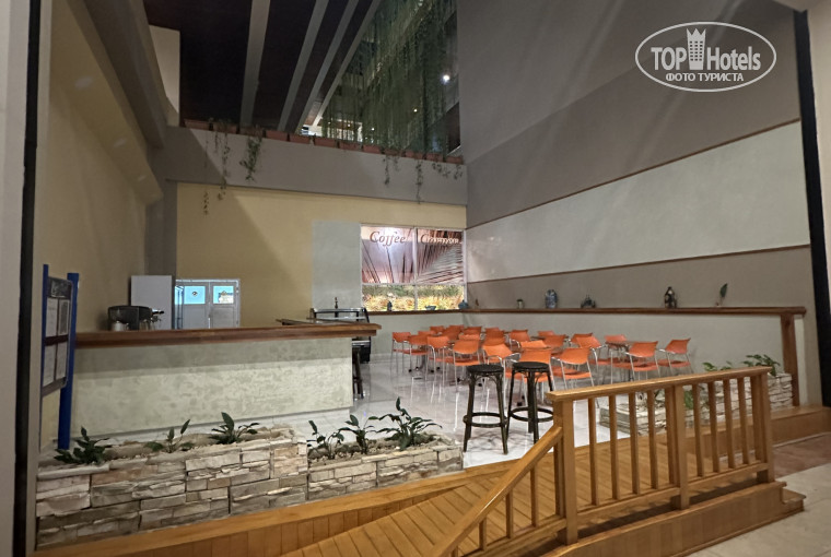 Кофе при отеле можно попить с 10 утра в маленьком закутке без окон и кондиционера, что очень странно, что в лобби баре нет кофе. Вообще странное расположение ресторанов в отеле. Завтрак и ужин проходят в ресторане при отеле на третьем этаже, а обед только в ресторане у бассейна и там очередище. Есть два ресторана ля карт по предварительной записи.