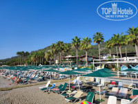 Здравствуйте! Посетили данный отель с дочерью (17 лет) в конце августа 2025. 1. Перелёт - летели AZUR, без задержек, трансфер брали индивидуальный туда ( 45-50 мин. до отеля) и групповой обратно (забирают за 5 часов до вылета, завозят в магазин). 2. Заселение - так как прилетели поздно вечером, заселили сразу, ланч бокс не предложили. 3. Номер - получили номер с видом на стену (2 этаж), недавно был ремонт в сан. узле, плитка и сантехника относительно новая, уборка так себе, балкон очень маленький, вдвоём не сядешь. Кондиционер новый, всё работает, в холодильнике 1,5 воды ставят разово, потом сам наливаешь из кулера или берёшь в ресторане/баре. Матрасы и бельё новые, чистейшие, халатов и тапок нет (для *4 это нормально). 4. Территория - маленькая и ухоженная. На территории 2 бассейна, один около ресторана, там лежаков и зонтов нет (не понятно почему). 5. Питание - разнообразие есть, много разных фруктов, пару раз давали красную рыбу на гриле, в принципе голодными не останетесь, на завтрак несколько раз попадалась черствая выпечка (прям сухарь), один раз попалось тухлое яйцо, яичницу не делали (для некоторых важно). Часто на гриле была рыба (скумбрия кажется). Бары работают до 22.00, далее платно, все коктейли очень сладкие, льют много сиропа, пиво как-будто разбавленное. Поэтому, если вам важен алкоголь, то не сюда. За питание я бы с натяжкой поставила 4. 6. Пляж и море - прекрасное море, глубокое, большое пространство для плавания, заход галька, но есть типа пандуса, поэтому тапки не нужны, так же есть лесенка с пирса. Лежаки расположены на песке, есть на бетоне (удобно для тех, кто не любит песок), есть на газоне. Полотенца выдают бесплатно в СПА. За море и пляж твердая 5. 7. Анимация - на вечернюю не ходили, утром зарядка на пирсе, была пенная вечеринка днем у бассейна, вечером слышали караоке. Аниматоры молодцы. 8. Интернет - wi-fi 20 баксов за 7 дней (одно устройство), работает отлично. По итого могу сказать, если вы не привередливы в еде, не употребляете алкоголь, для вас важно чистое море и спокойный отдых, можно спокойно лететь, конечно если цена приятная))).