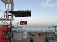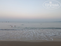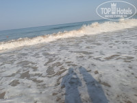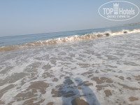 4) Первая линия. До моря близко. Пляж хороший песчаный. Волны порой приличные. На дне в песке могут попадаться не маленькие камни, поэтому купаться лучше чуть правее, там нет камней. Лежаки расположены как на песке у берега, так и в зеленой зоне у пляжного бара.