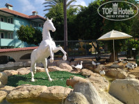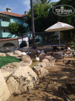 1) Территория не большая, компактная. Всё расположено близко. Есть два бассейна, водные горки. По мне зелени маловато. Красивых цветочных садов нет, вместо него пахнущий мини зоопарк (утки, гуси, павлины, попугай, голуби, курицы, кролики).