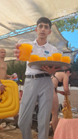 Бар на пляже работает с 10 часов, но водичку можно взять и раньше. В баре : фрукты, жаренные снеки, можно взять пиццу, гамбургеры. Из алкоголя только пиво. Безалкогольных напитков большой выбор. Есть кабинки для переодевания. Классный пирс. Вход в море- мелкая галька, для нас очень комфортно и без коралок (в прошлом году жили в Анталье на пляже Коньялты, так там действительно крупная галька, тяжеловат вход в море). Единственное мне не нравится- душ на пляже очень холодный, мужу наоборот нравится.