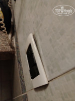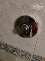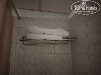 4. Номер: ванной текло все, кнопка смыва, кран, душ, крепление для душа сломано, ванна с трещиной, полка для полотенец держится на изоленте, холодильник неработал от слова со всем(подходили на ресепшн говорили менеджеру, толку ноль), телевизор времен СССР, годов так 2000г.,сейф не работал.