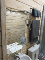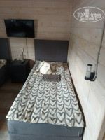 Мы забронировали семейный четырехместный номер на первом этаже, с трехместным размещением. Не смотря на то, что окна номера выходили на дорогу, машин очень мало проезжало мимо, так что мы спали даже с открытым окном из-за жары. В номере есть всё необходимое: удобная кровать, тумбочки, вешалка, телевизор, бесплатный Wi-Fi. Нет только кондиционера. Север всё таки) В номере одна из кроватей двухэтажная. Матрасы и постельные принадлежности чистые, удобные и приятные. Санузел: в номере (душ, туалет, раковина). Вода в рукомойнике и душе техническая, желтоватого оттенка. Очень маленький, но уютный номер. К сожалению номер не закрывался ключем, что-то случилось с замком. Но поскольку номер находился рядом с комнаткой администратора, которая всегда была открыта, наш номер был под надежной охраной. Есть бесплатная парковка для автомобилей.