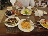 Питание нормальное, всё съедобно и много было даже вкусно..спасибо поварам, НОООО такие грязные столы с утра на завтрак я не видела нигде...все крошки разлитые соуса, шелуха семечек с вечера будет там же и с утра...Ходишь и выбираешь стол по принципу где меньше грязи. Вообще с чистотой и уборкой в это отеле ооооочень плохо, я обычно грязи не вижу: во первых слепая. во вторых спокойно к этому отношусь. но тут.....Уборка в номере заключалась в выносе в создании бабочки из одеяла на кровати мужа. Пластмассовые и стеклянные стаканы и тарелки, которых к концу отдыха некуда был ставить никто даже и не подумал вынести, я уж не говорю про уборку полов. Вообщем поборникам чистоты точно не сюда.