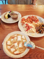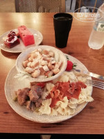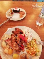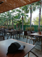 Ресторан на открытом воздухе, утром ещё прохладно, вечером уже не жарко, но вот в обед там горячо настолько что хочется очень быстро закинуть в себя еду и убежать в прохладу, хотелось бы там побольше вентиляторов. Еды достаточно, не вся вкусная, но вкусы дело субъективное, была рыба на гриле, лепешки пекли, пиццы, салат цезарь порционно, раки варёные, суп какой-то один на обед и другой на ужин, ну и несколько гарниров, пара видов мяса, холодные закуски, овощи, два стола десертов, пахлавы и вправду не было, наверно потому что она дорогая, и куча фруктов (арбуз, дыня, слива, груша, яблоки, персик, апельсин, лайм, виноград), правда спелых фруктов приходилось поискать. В ресторане и на баре есть холодильники с питьевой водой 0.5, можно брать сколько хочешь, удобно. Жаль у них нет отдельной мусорки для пластика, столько переработать можно.