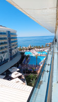 Но к отелю есть, и очень хочется, чтобы обратили на это внимание, лежаки на море срочно увеличить по количеству, а в первую очередь их заменить, также на пирсе заменить все лежаки, как на всех бассеянах, и добавить душ именно на пирсе, он шикарный, большой, но вот хотелось бы душ, это не проблема, при заходе пустить краник с лейкой, и тогда будет просто супер. 3 раза приплывала огромная черепаха, по утрам можно увидеть вместе с ней и креветок. Нырять с пирса нельзя, так как есть камни, но они не мешают, а даже наоборот, очень интересно наблюдать за рыбками. Официанты всегда следят и уносят пустые стаканы. Анимация понравилась всем очень, с 9:00 до 22:00 детская, но она одна и та же, а с 22:00 до 23:00 каждый день разнообразна и интересна. С 23:00 живая музыка в баре у отеля, дискотеки с 23:00 до 2:00 у большого бассейна на пляже, что не мешает отдыхающим в номерах, тоже большой плюс. Сауна, хамам отличные, но тоже крытый бассейн и джакузи закрыты в летнее время, очень жаль. При отеле есть небольшие бутечки с сувенирами и минимаркет. Также большой — это мороженое, оно простое, с автомата, для деток бы хотелось, чтобы это улучшили. И по шаурме и гамбургерам, шаурма просто лепешка, и мясо ничем не заправлено, котлеты в гамбургерах тоже непонятные, не сочные. Ну и очень хочется на анимации выделить то, что кто опаздывает, чтобы аниматоры не пропускали проходить через весь зал и мешать другим, подняться можно и у входа. В остальном очень неплохо. Большое спасибо старшему бармену Юсуфу 👍, очень внимательный, не дает пройти без очереди, иностранцам все стоят и ждут своей не разделяют россиян и иностранцев, это хорошо.