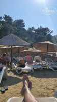 Море... Цвет воды завораживает. Для плавания места предостаточно, есть заход с пирса, а также с берега по гальке... Мы нормально заходили даже без специальной обуви. На пирсе — бар и музыка, на лежаках на берегу у моря... шум волн... Локацию выбирали по настроению 💞. Три дня в воде плавал мусор как природный так и пакеты и пр. ... Причем на всех зонах для купания... Очень неприятно... Думаю, что вполне могли почистить... 🤪.